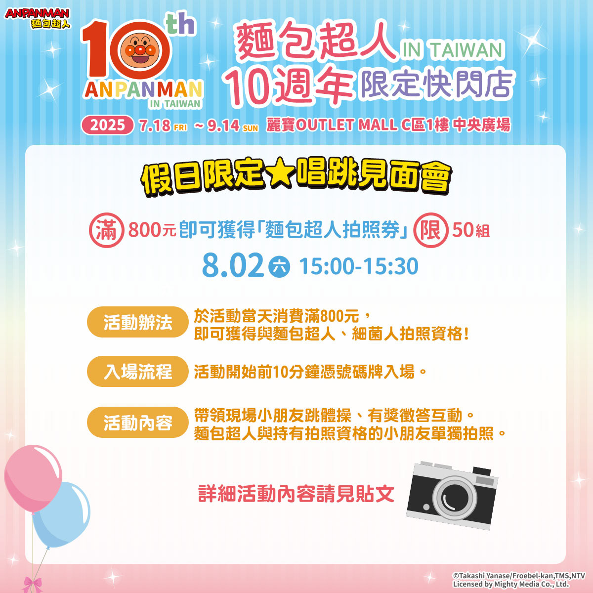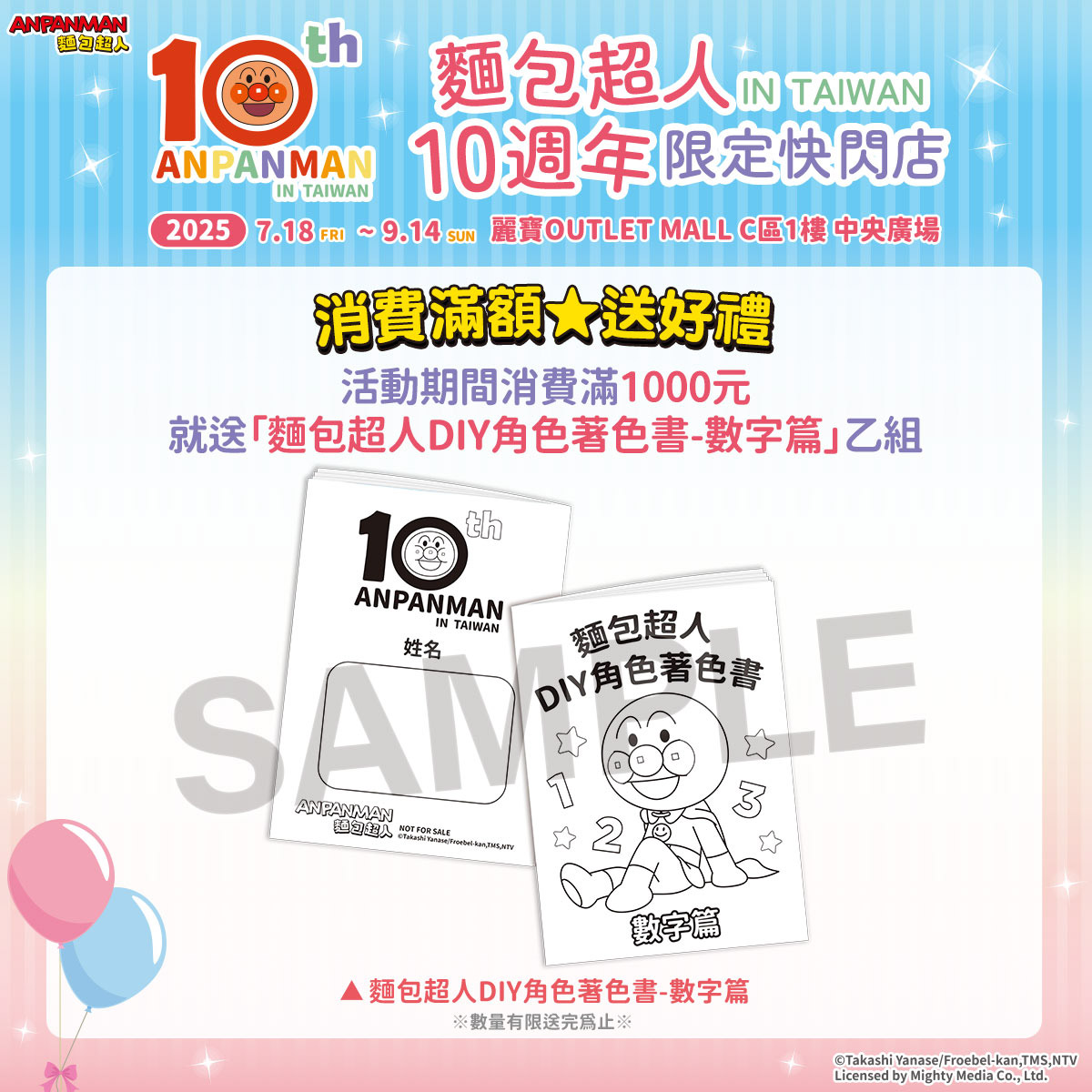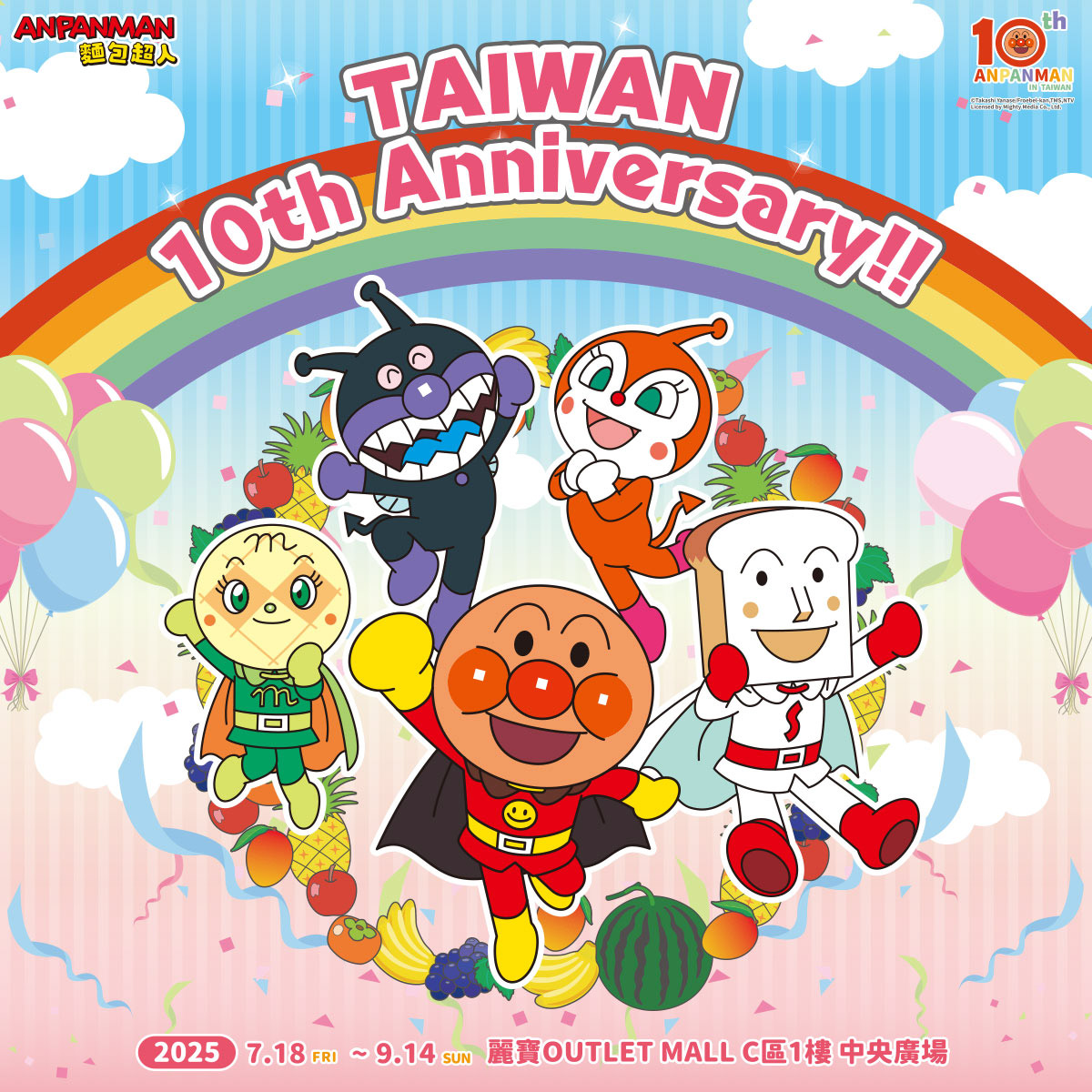 「麵包超人10週年in Taiwan」限定快閃店7/18台中麗寶登場!